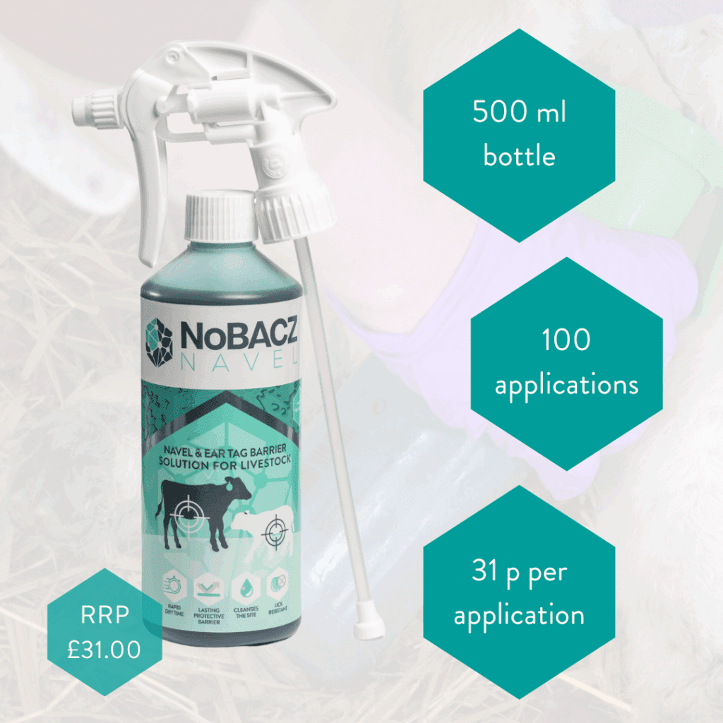 I absolutely love using NoBACZ Navel; it’s been an absolute godsend! I wasn’t 100% sure how it would better iodine and surgical spirit, but from seeing how much quicker it dries the navel, even in rainy conditions, and how it deters ewes from licking the lambs’ navels, I would thoroughly recommend it to other farmers.